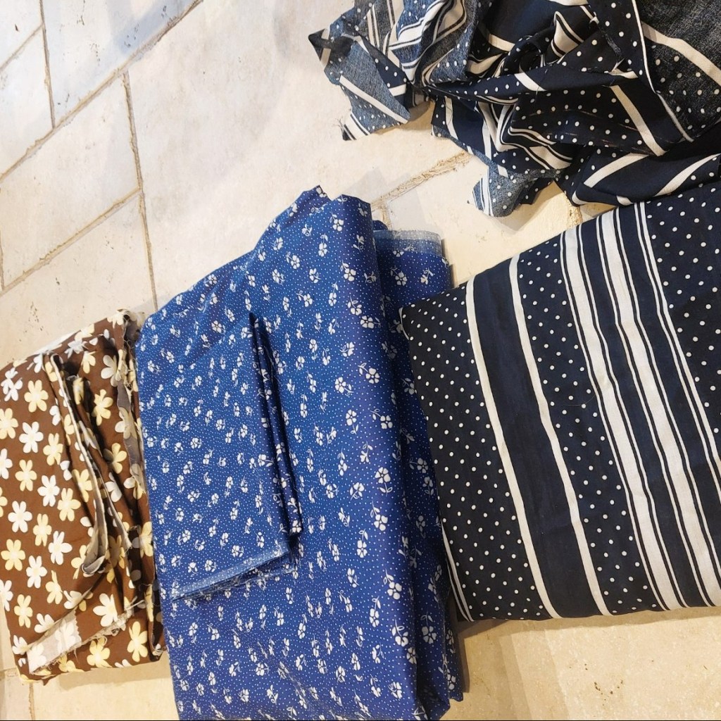 - Another relatively hard cotton, an absolutely gorgeous (my favourite) material. I’ll sew myself a whole set! I will make a vest and a skirt from it. I might make shorts if there is enough material left.